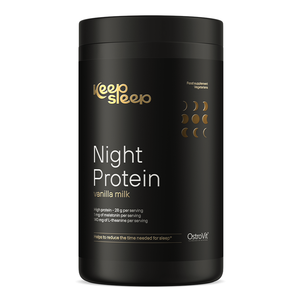 OstroVit Keep Sleep nočne beljakovine je visokokakovostno prehransko dopolnilo, ki je vir beljakovin in dragocenih snovi, kot so melatonin, mio-inozitol, L-teanin, magnezij, ki skupaj delujejo sinergistično in spodbujajo globok, kakovosten spanec.