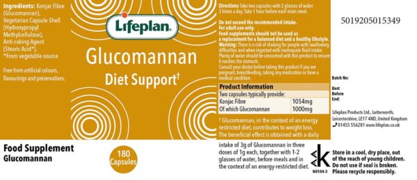 S tem naravnim izdelkom za hujšanje rastlinskega izvora preprečite željo po hrani in se dlje časa počutite siti. Lifeplan Glucomannan podpora pri hujšanju vsebuje 500 mg glukomanana (vlaknin konjak) na kapsulo.