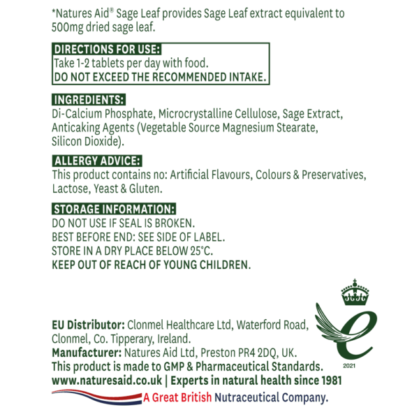 Natures Aid Žajbelj 500 mg, 90 tablet