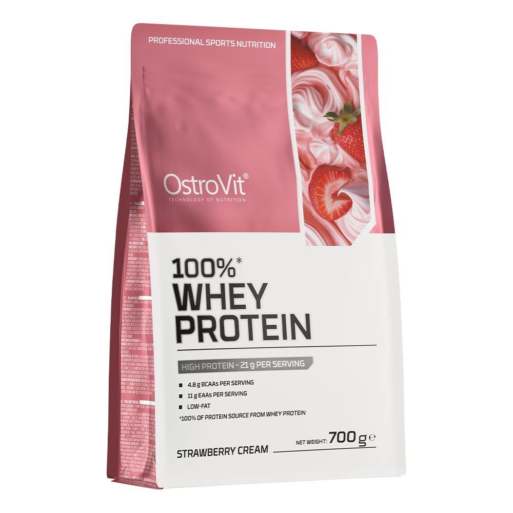 OstroVit 100% Whey Protein je prehransko dopolnilo, ki je vir koncentrata sirotkinih beljakovin in vsebuje kar 70 % visokokakovostnih beljakovin. Je pripravek, ki telesu zagotavlja razvejane aminokisline BCAA ter esencialne aminokisline EAA.