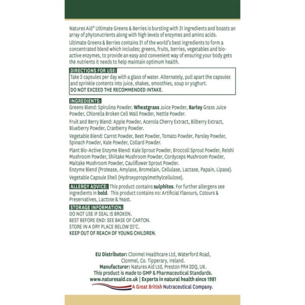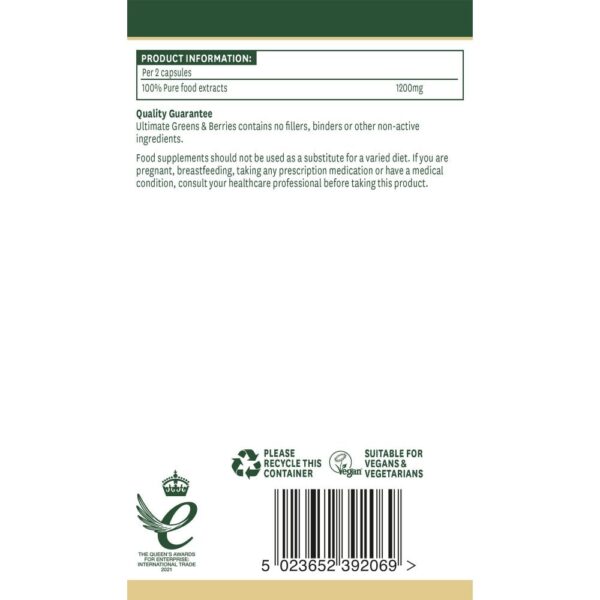 Kapsule Ultimate Greens & Berries so odličen vir hranilnih snovi za posameznike, ki želijo v svojo prehrano dodati več sadja in zelenjave, in sicer na enostaven in priročen način.
