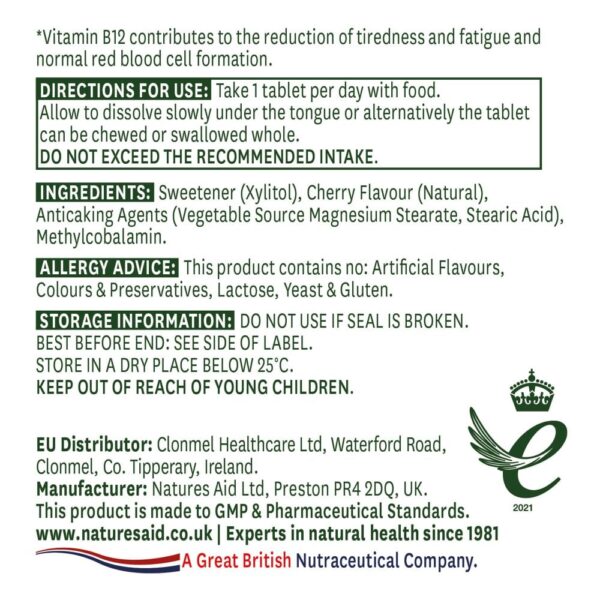 Natures Aid Vitamin B12 za pod jezik, 180 tablet (XXL pakiranje)